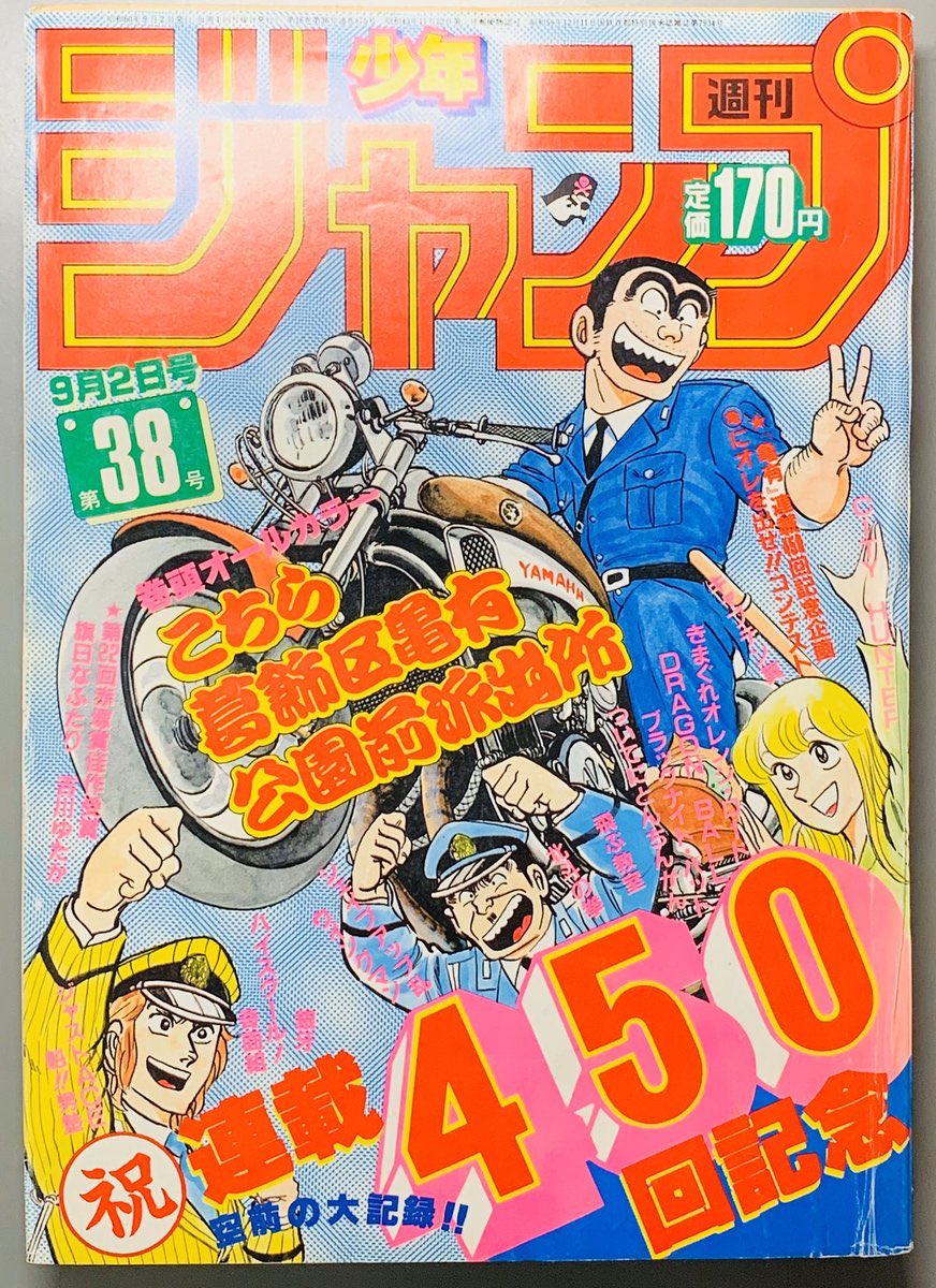 ヒデヨシ على تويتر 今週のジャンプはすごい こち亀尽くし 最終回でジャンプの表紙 を飾ったのはこれまで リングにかけろ ドラゴンボール スラムダンク の3作品だけ ナルトも最終回はセンターカラー ここにこち亀が加わった 両さん40年ありがとう